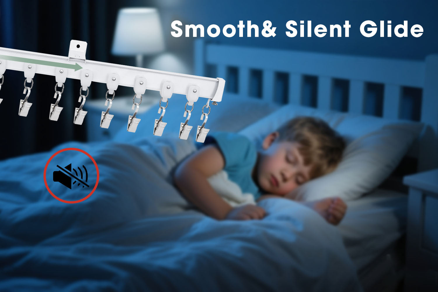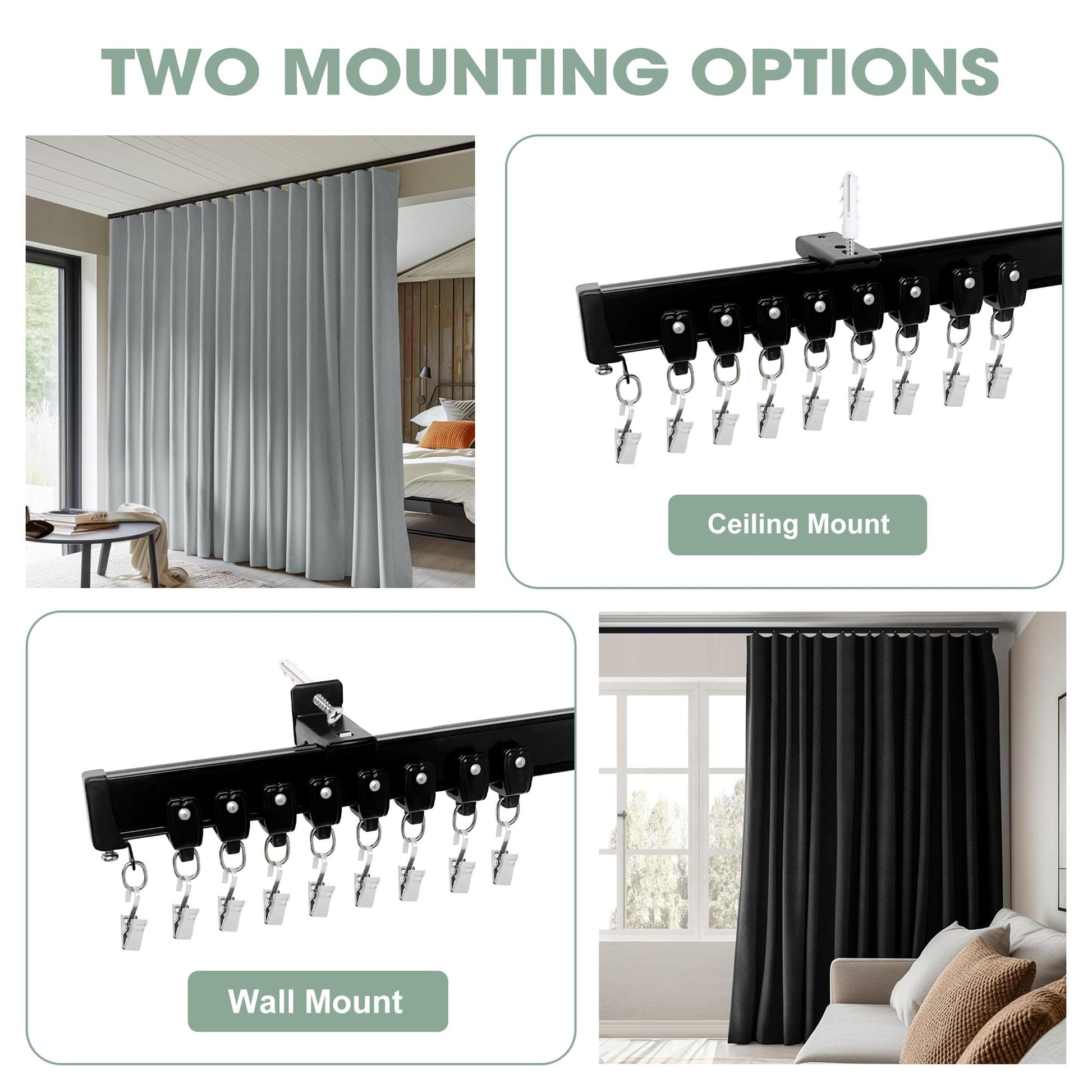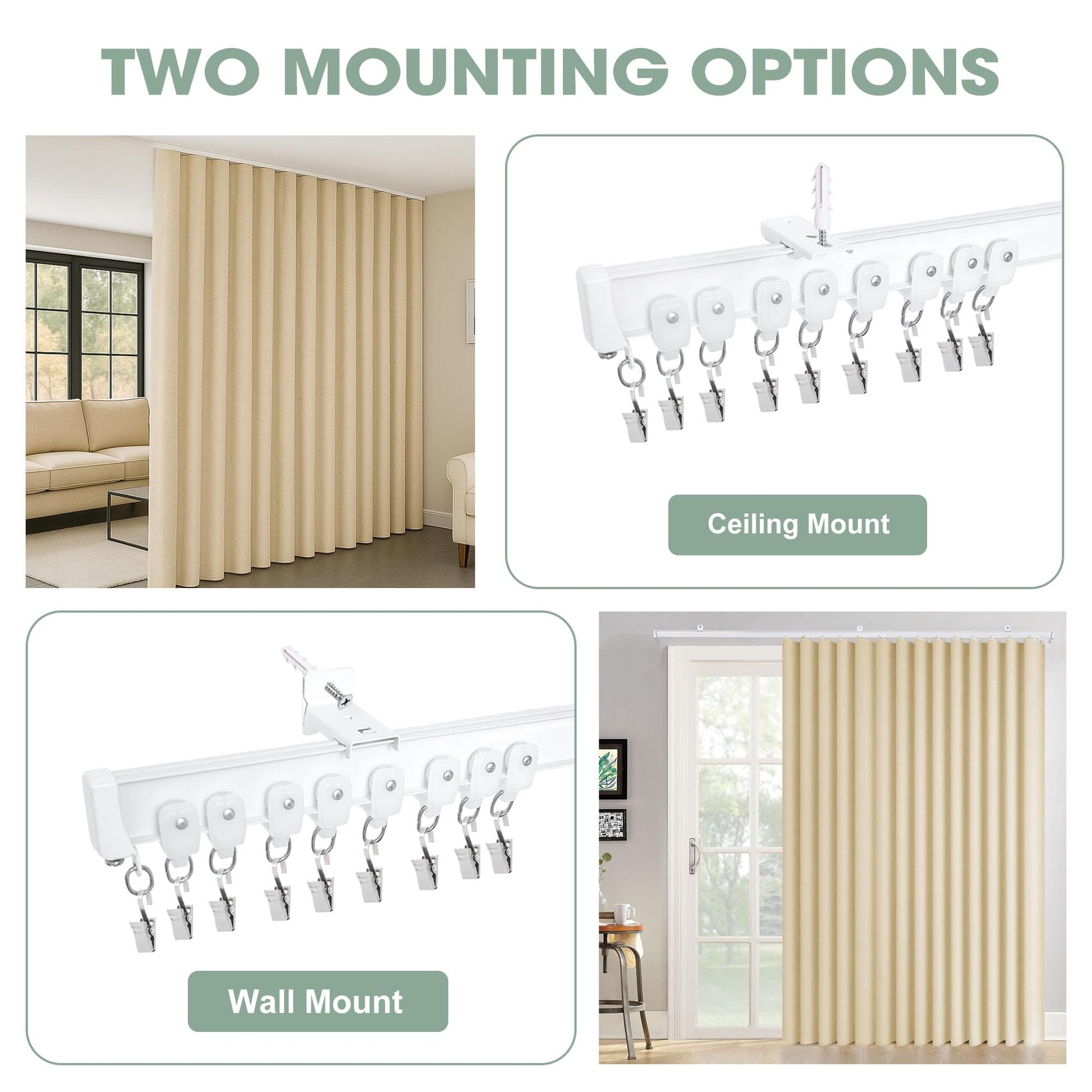 - Extra-Long Curtain Tracks: Each curtain track is 3 feet long, can be spliced seamlessly using the dedicated connector included in the package, can be extended indefinitely, and fits with silent pulleys for smooth gliding to create room partitions of over 100 feet.