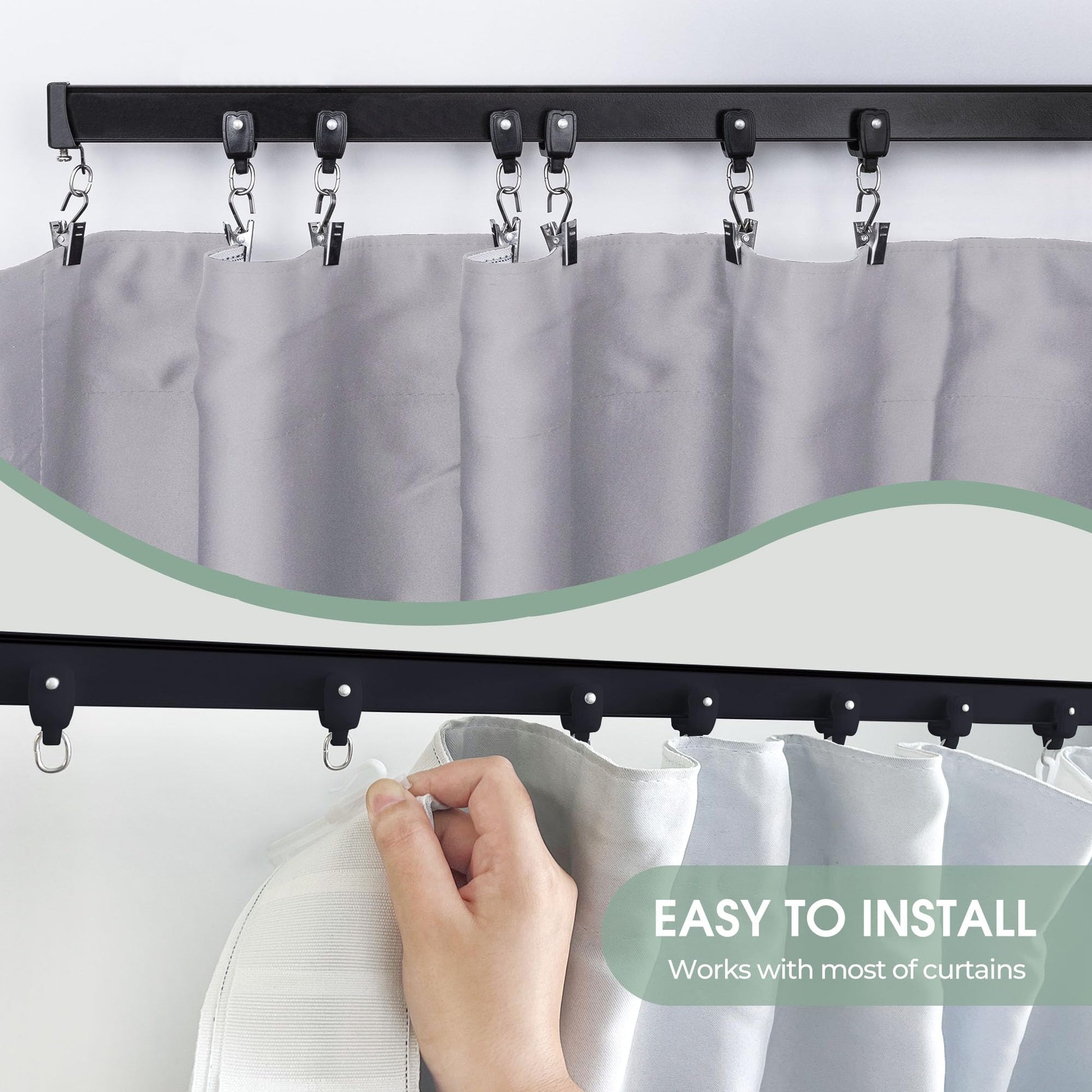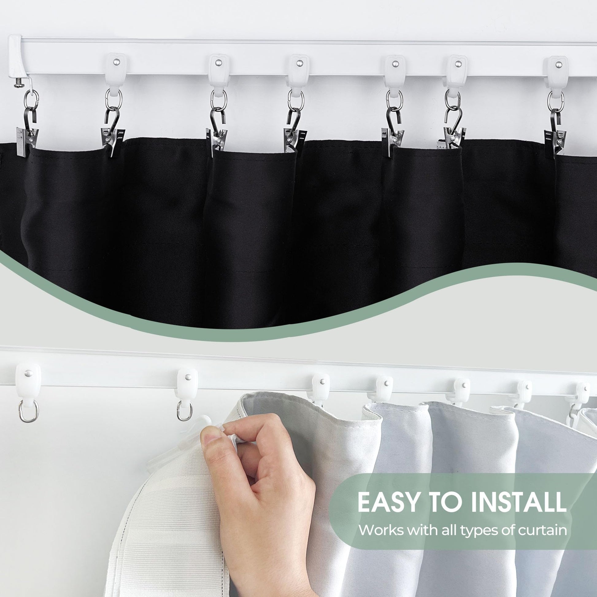 - Curtain Track with Clips: The curtain track comes with a high-quality curtain clamp with a strong bite force, which can clamp 40-pound curtains, which can meet the use of most curtains, and even if there is a problem with the curtains, you can also clip a sheet as a temporary solution.