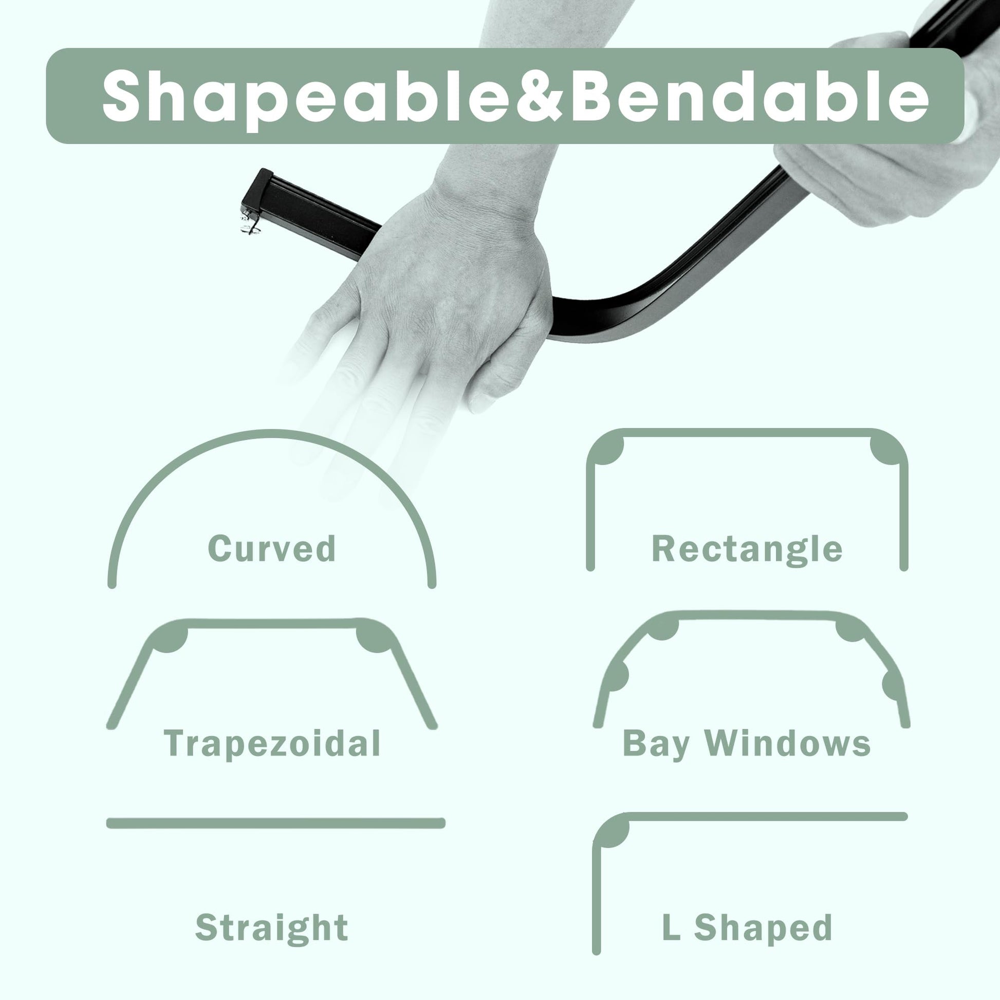 Our ceiling curtain track rails are very flexible and can keep straight, while they can be bent into trapezoidal, arc, L-shaped, arc-shaped, etc,Very easy to bend and doesn't require any tools. suitable for any window and ceiling room partition and window track.