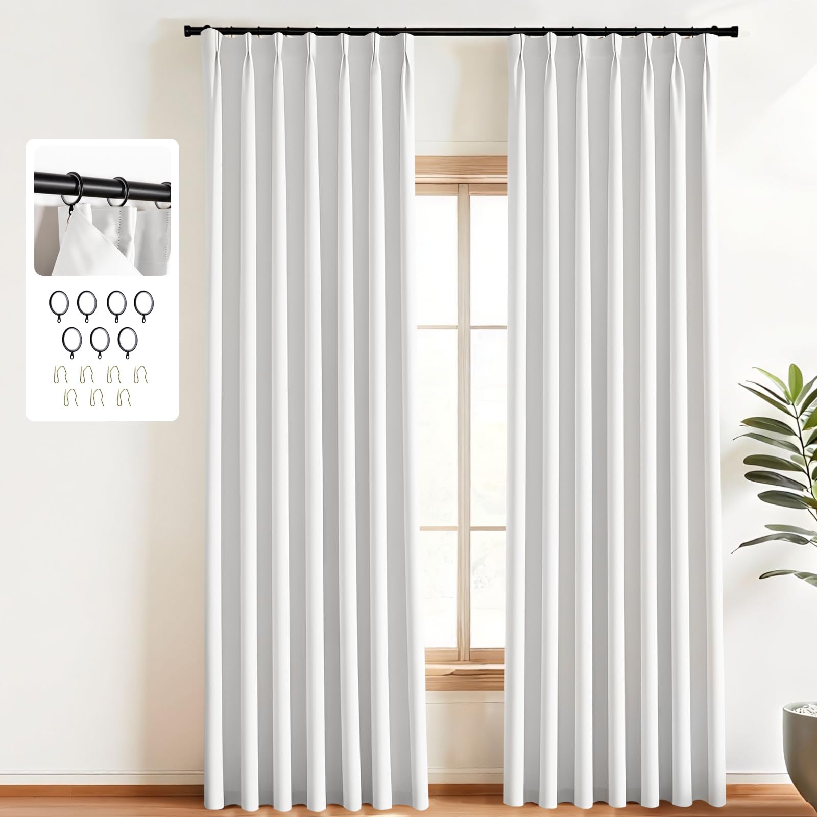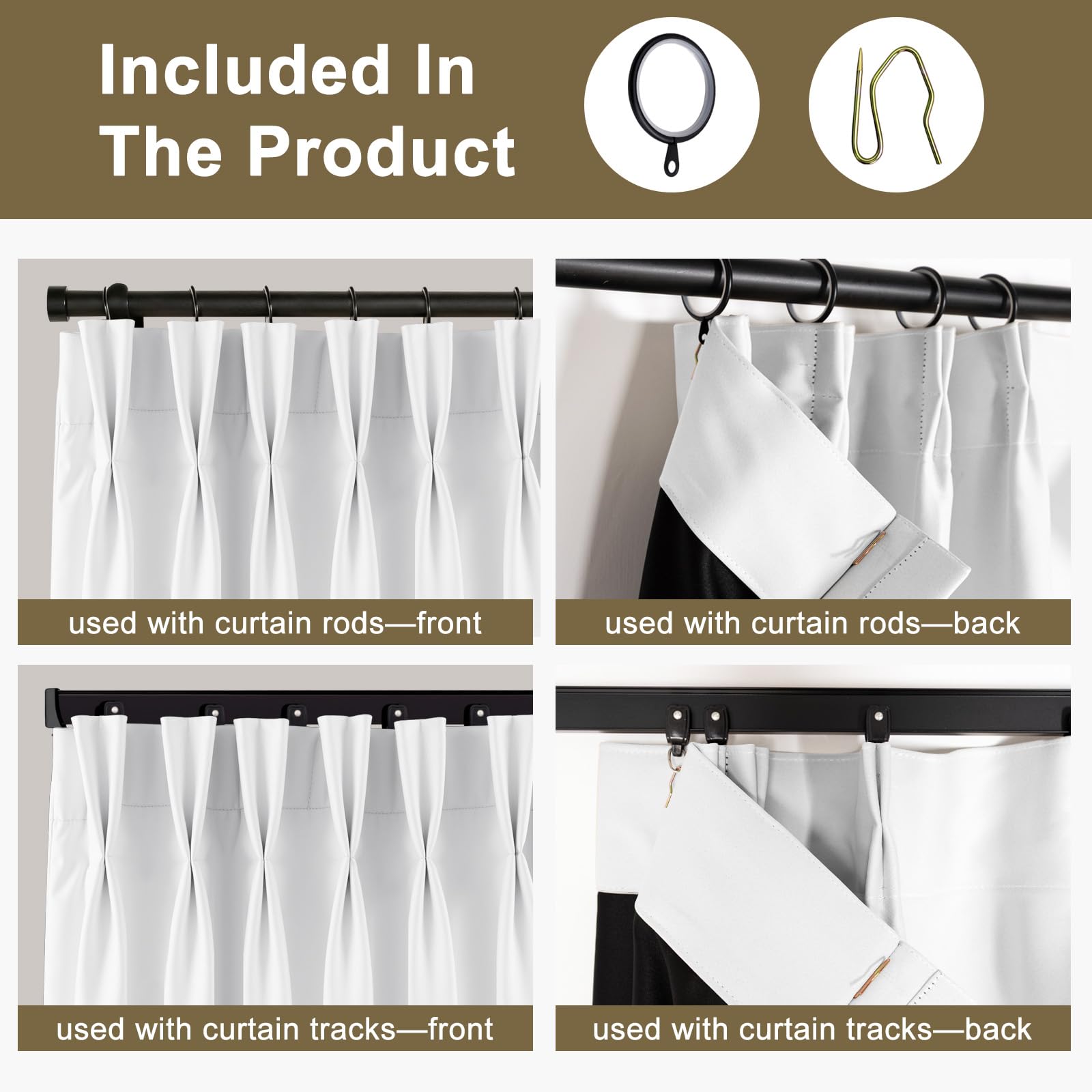 - Ready Made Curtain: Each pack includes 2 panels pinch pleated curtains, 14 black metal curtain rings, and curtain hooks. Suitable for various hanging styles.
