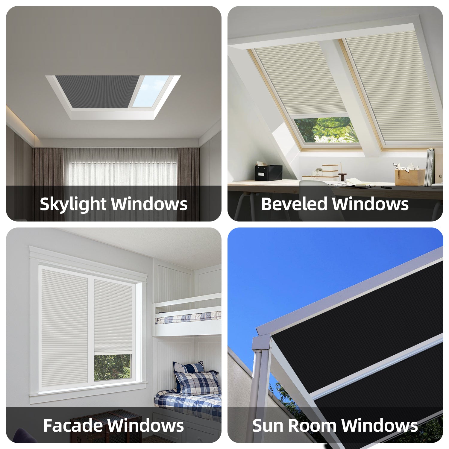 Nos stores de puits de lumière électriques sont équipés de tissus en nid d'abeille occultants de haute qualité qui bloquent efficacement la lumière du soleil et la chaleur et offrent un environnement complètement assombrissant la pièce.
