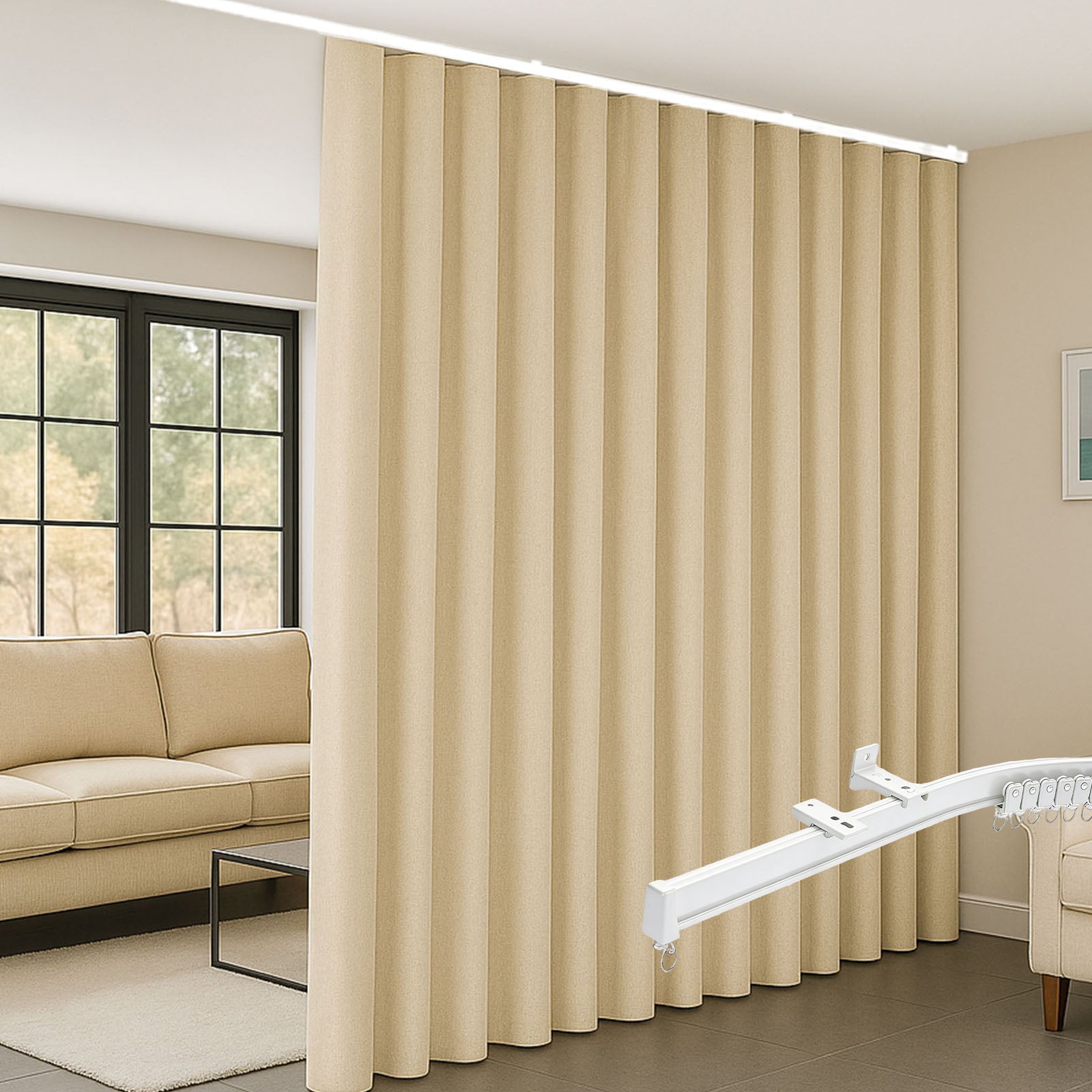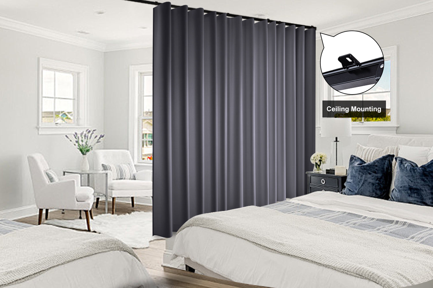- Room Divider Curtains Track Set: Room divider curtain set Including blackout privacy curtain x 1,bendable curtain track white x 1,No need any other accessories, bringing a privacy space and creating new solution by this room divider screen for room separation without building walls or anything structural