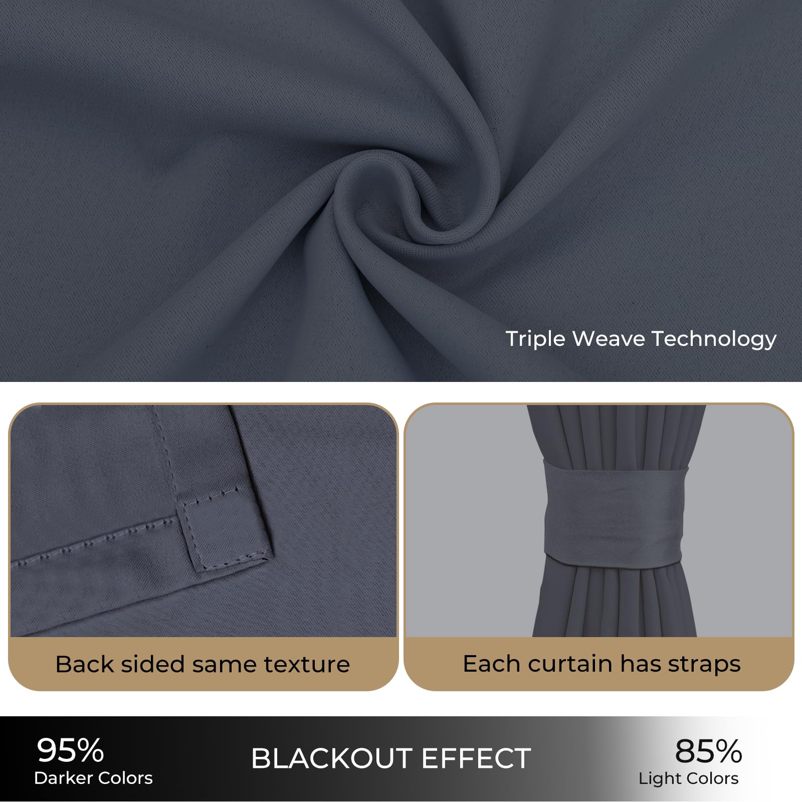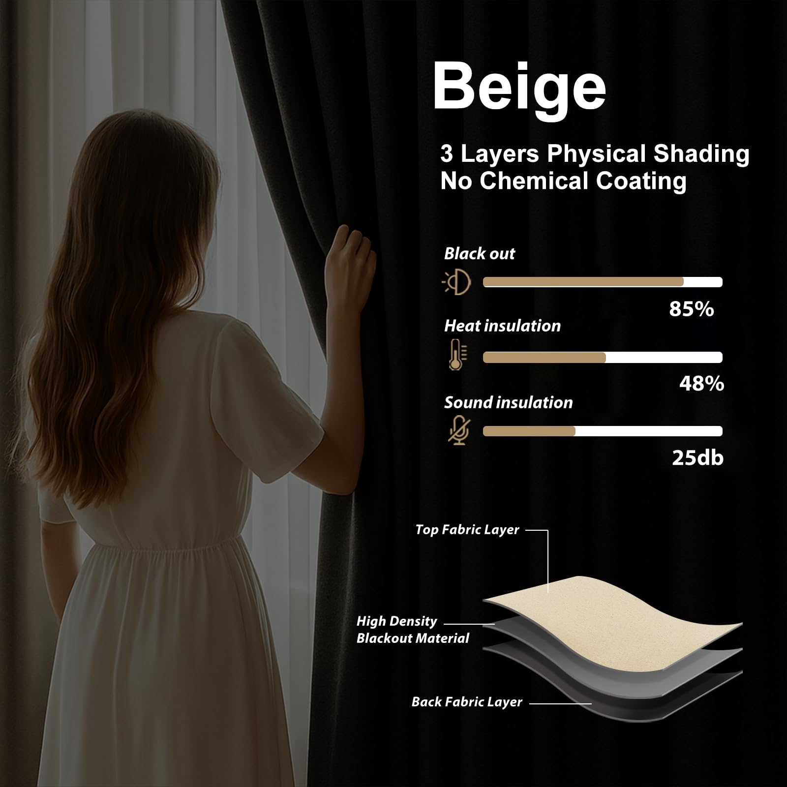 Crafted from premium durable polyester fibers and ultra soft three-layer fabric,offering excellent performance in blocking sunlight,UV rays,sound blocking and heat insulation,Whether you want to create a more private space or a more quiet and comfortable environment, this privacy blackout curtain can always be an good helper