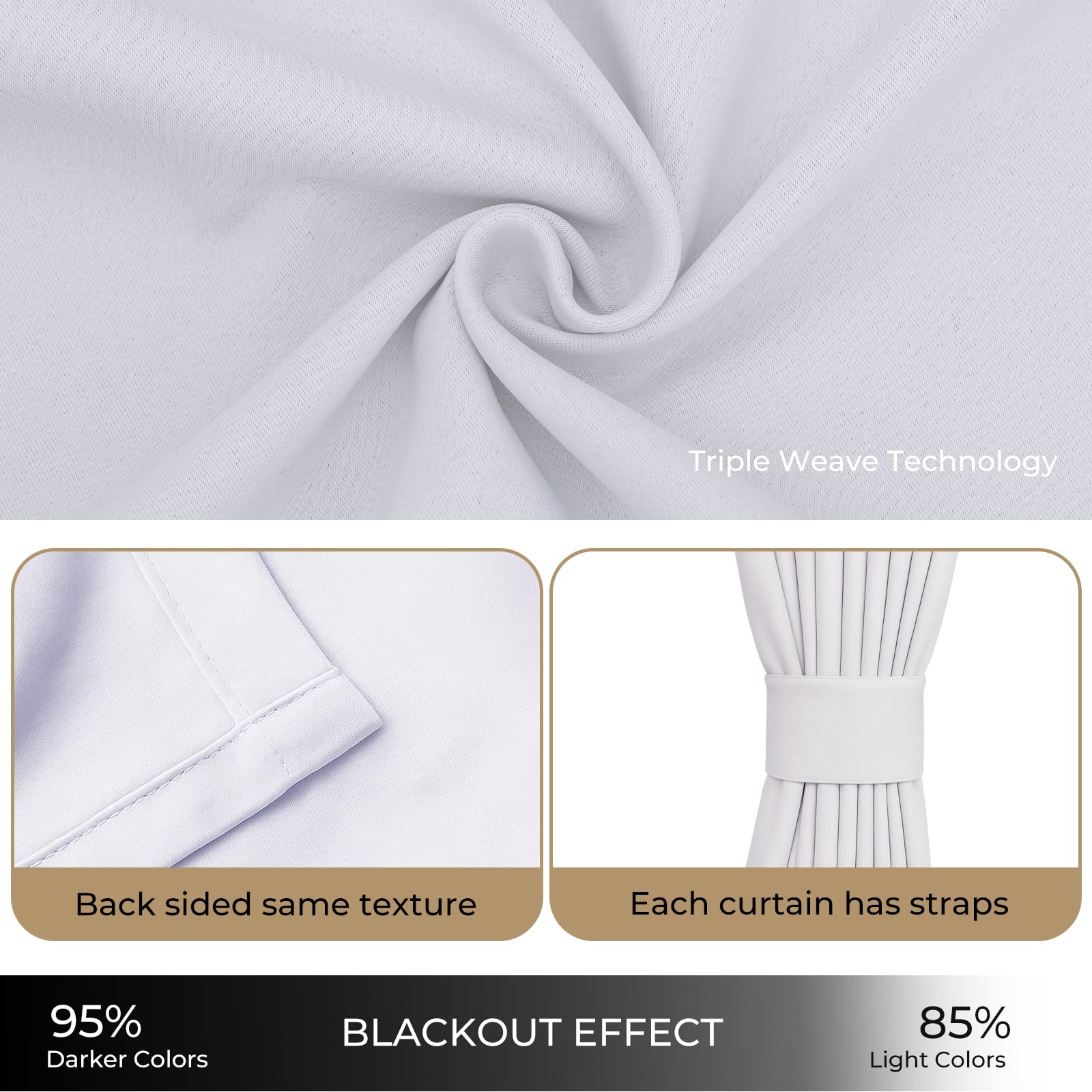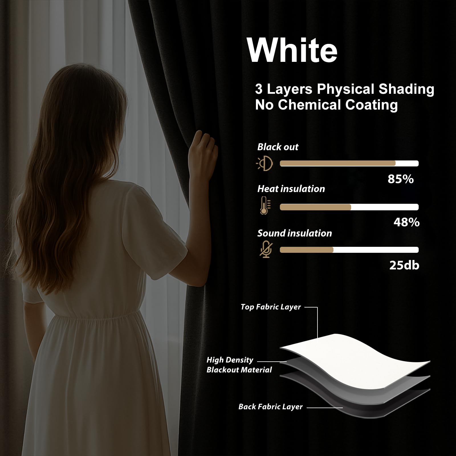 Curtain is made of high-quality polyester fiber, three-layer weaving process, black backing, can achieve 95% shading (white can reach 85% shading)