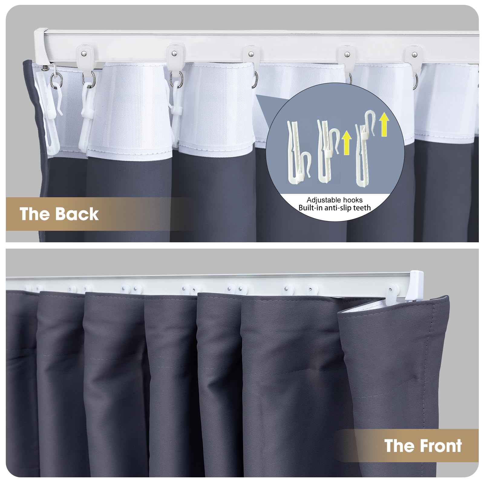 The upgraded curtain rod set uses internal connectors to seamlessly stitch, which allows each curtain rod to be attached very tightly and smoothly without protruding parts, so you don't have to worry about stuttering when pulling the curtains, and enjoy silky smoothness.