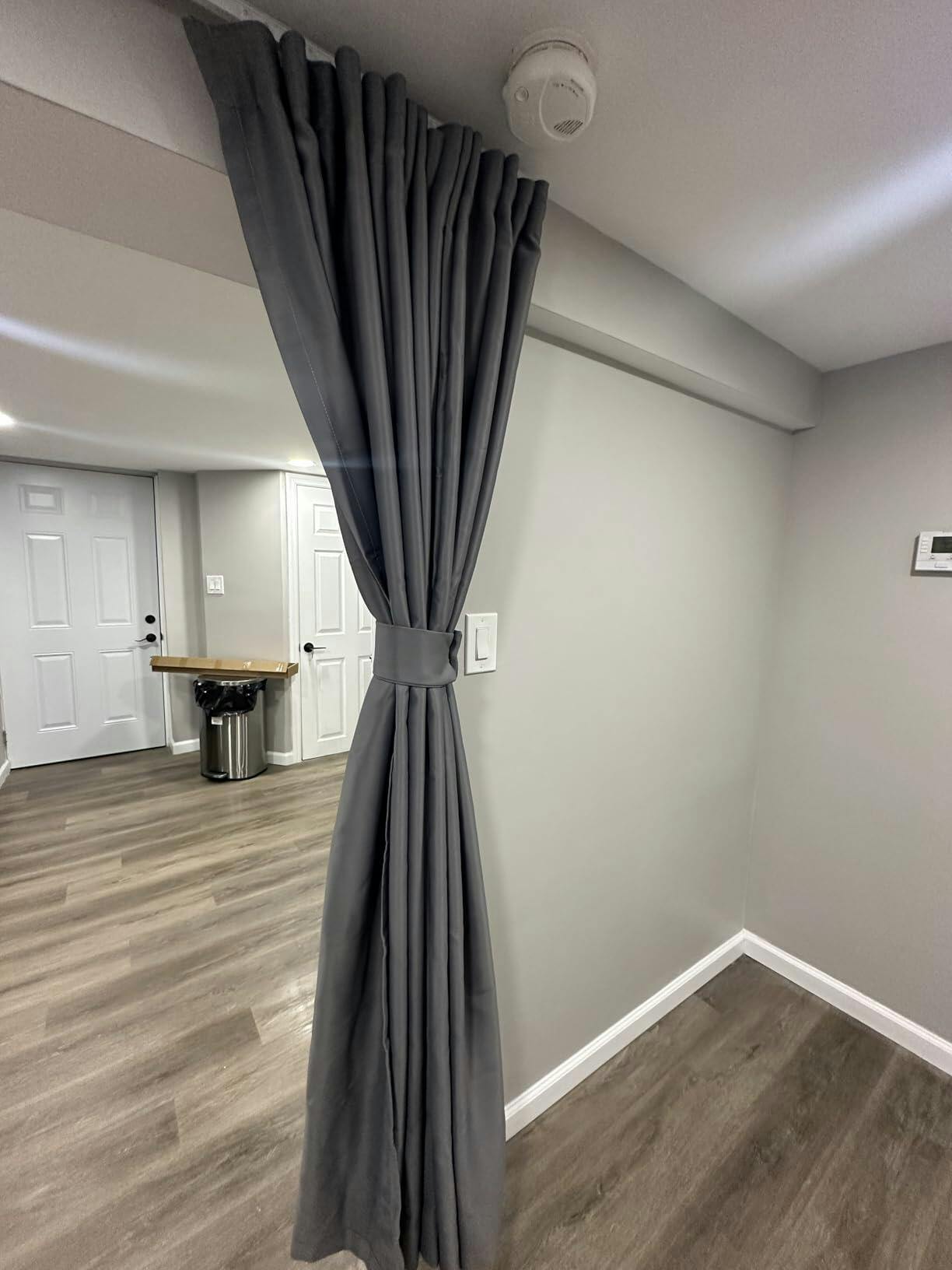The track and curtains have made a great room divider in our basement! The installation was rather easy, but was helpful to have two people working on the track. We didn't bend it twice and was done by hand, so no tools needed with that adjustment. The curtain is heavy weight, so definite feel of separation of rooms and very functional