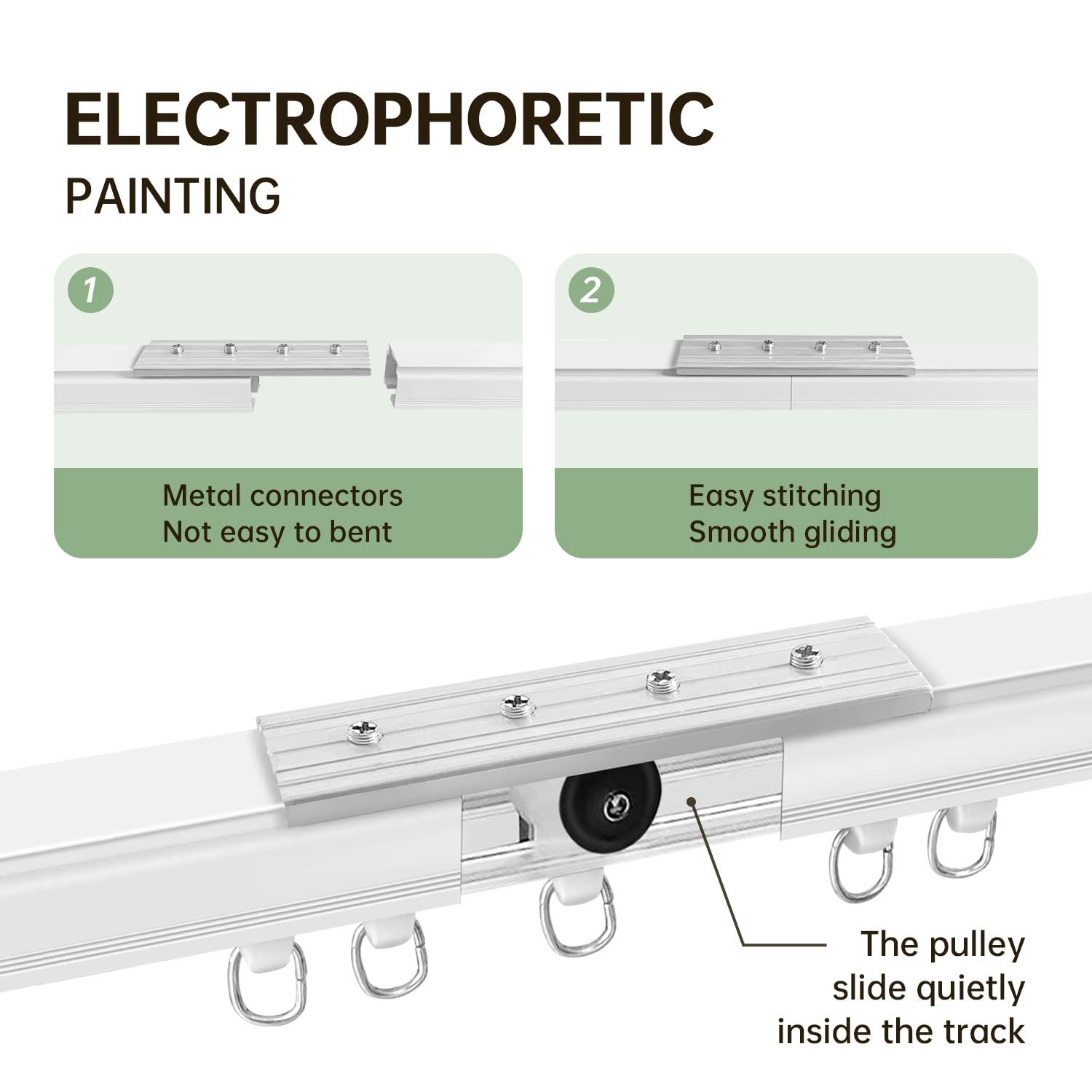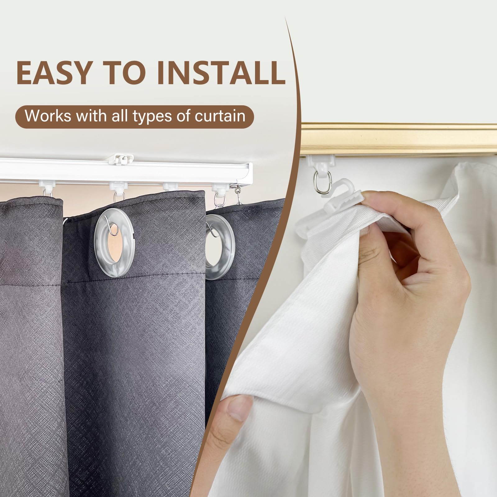The curtain tracks are made with high photoelectric paint technology, which makes the track surface and interior very smooth and perfect, easy to slide, suitable for home, office, school, hospital, hotel, outdoor, RV privacy, space partition or holiday decoration.