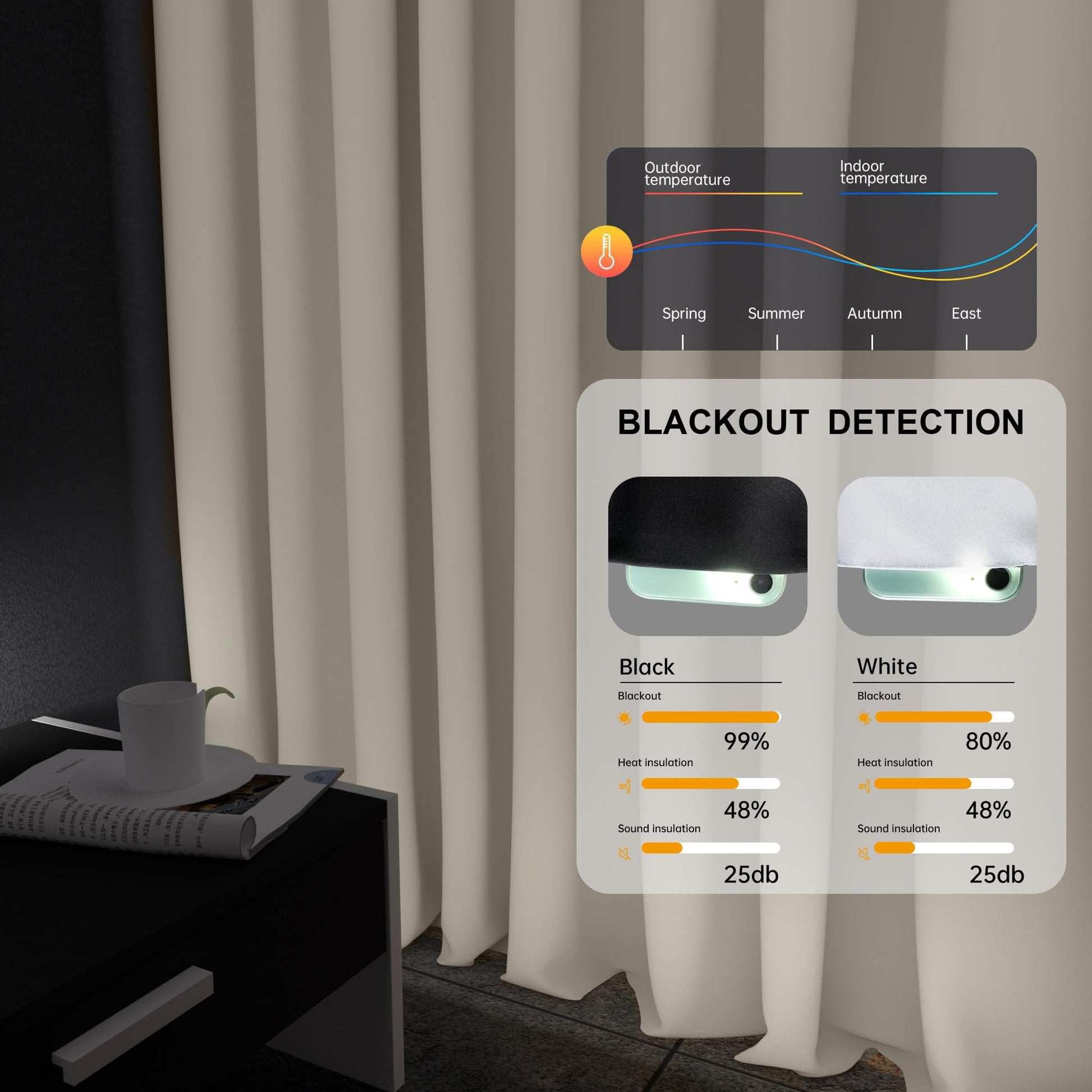 - Room Divider Blackout Curtain: made from superb polyster in triple weaving technique, the middle layer is a blackout material, the black curtain can reach 95% blackout, the curtain is very soft and skin-friendly, and the curtain folds can be eliminated by natural hanging