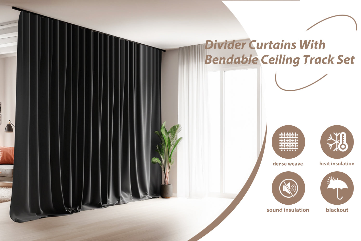 Benny Thermal Textured Blackout Room Divider Curtain Kit with Heavy-Duty Aluminum Bendable Ceiling Track Set