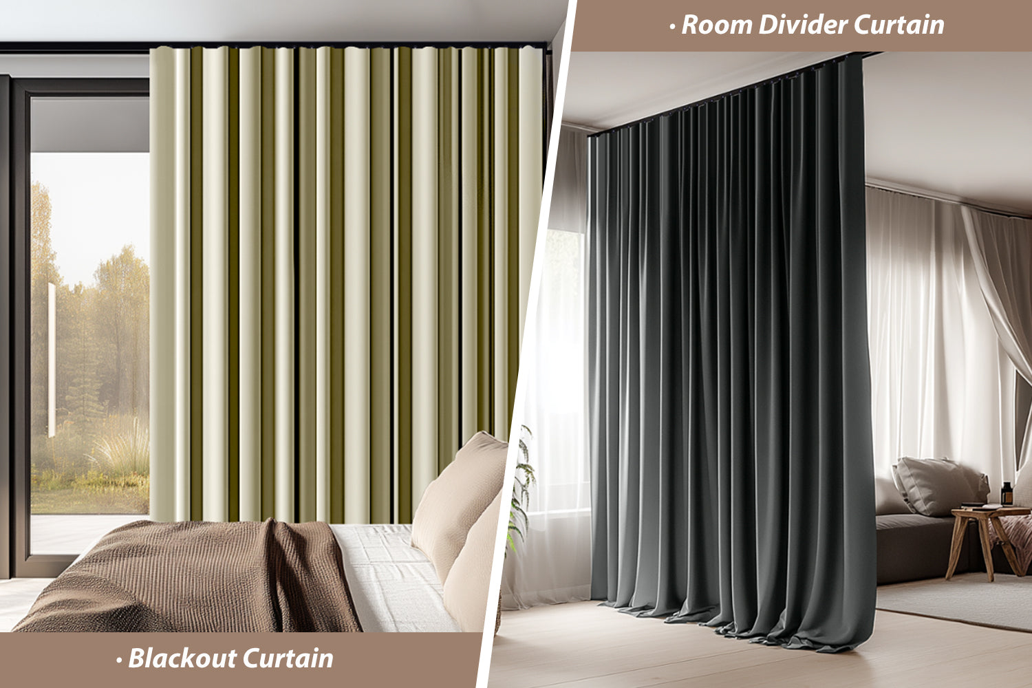 (Light-grey)High-Density Silk-Look Blackout Divider Curtain & Black Track Set