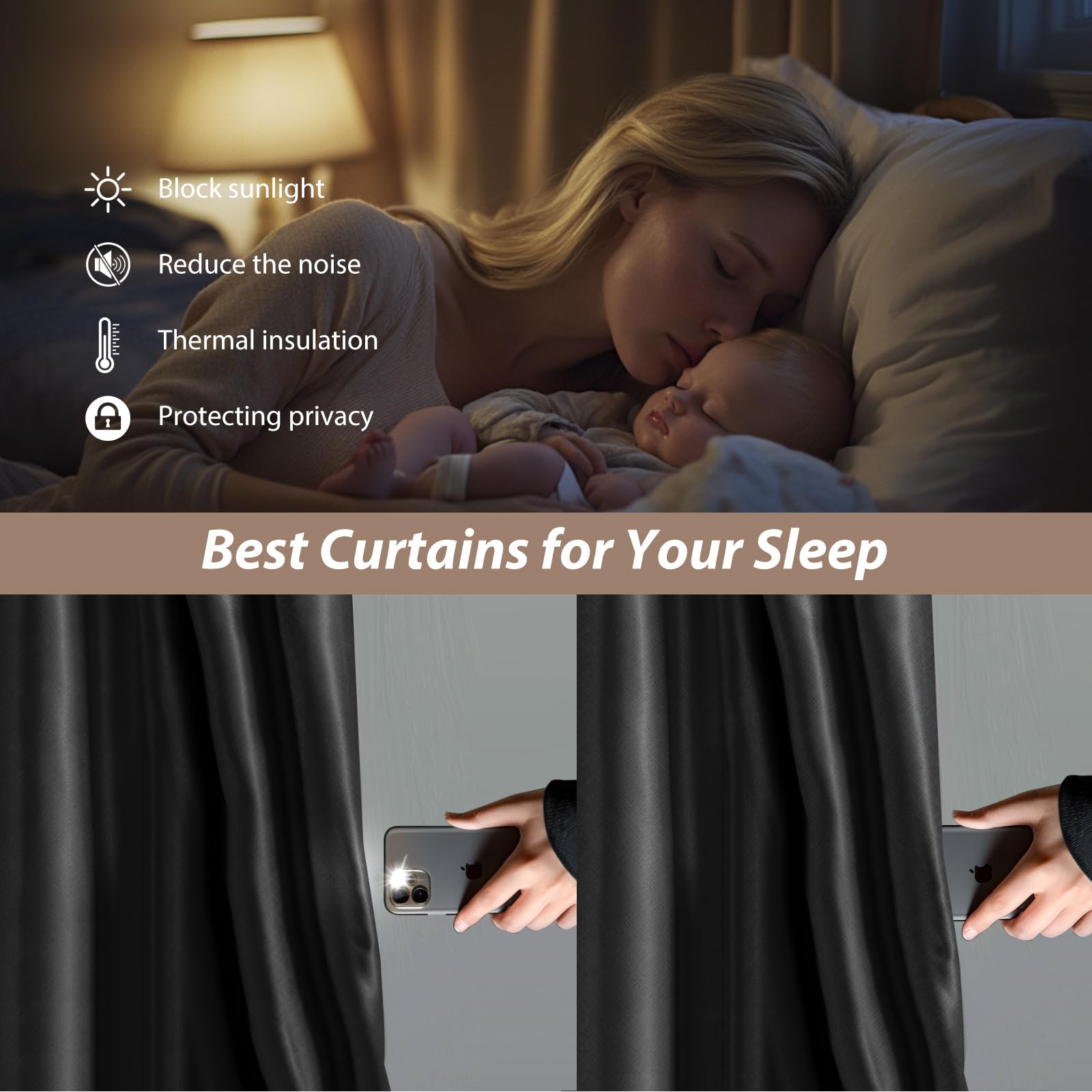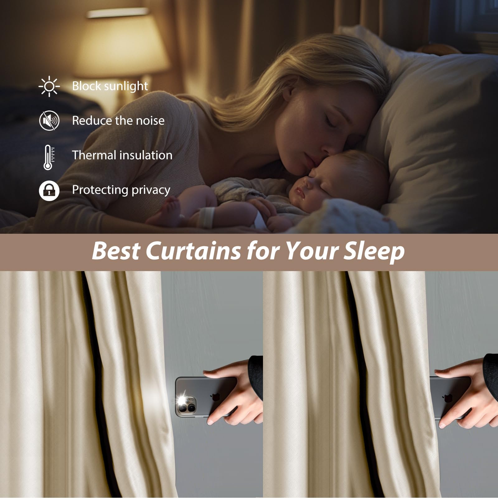 - 100% blackout curtains: Featuring an innovative three-layer high-density weaving process, it is 40% thicker than ordinary curtains, 25% more sound-absorbing than ordinary curtains, 30% more insulating than ordinary curtains, and 40% heavier than ordinary curtains. The extra stitched black lining completely blocks sunlight and UV rays, Create environments such as completely dark bedrooms/video rooms