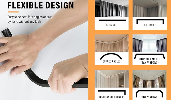 - MaKefeile Flexible Ceiling Curtain Track: made of high quality thickened PVC and embedded metal plates, paired with silent pulleys for quieter and smoother curtain operation,it can be bent into various shapes such as U-shape to suit various scenes