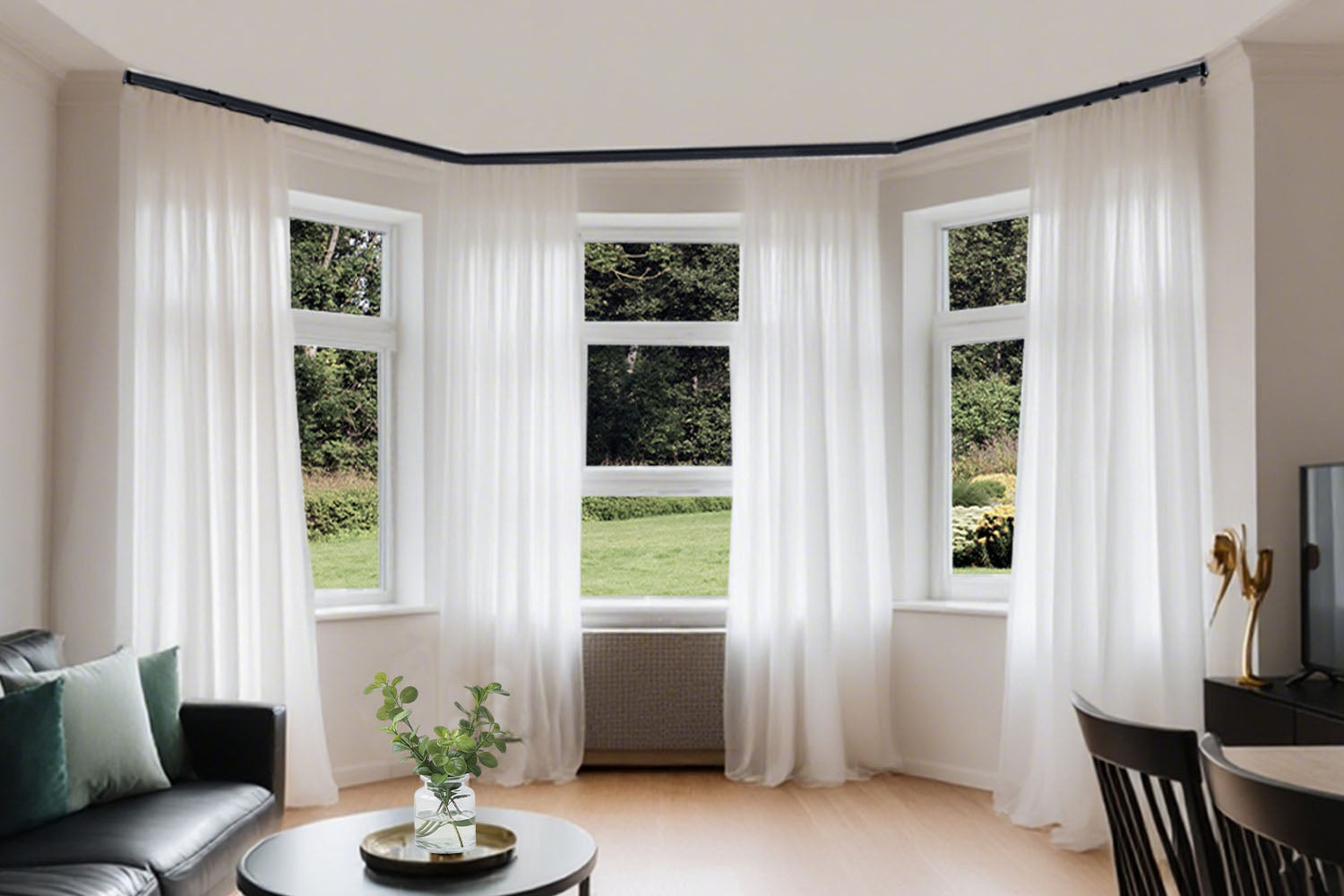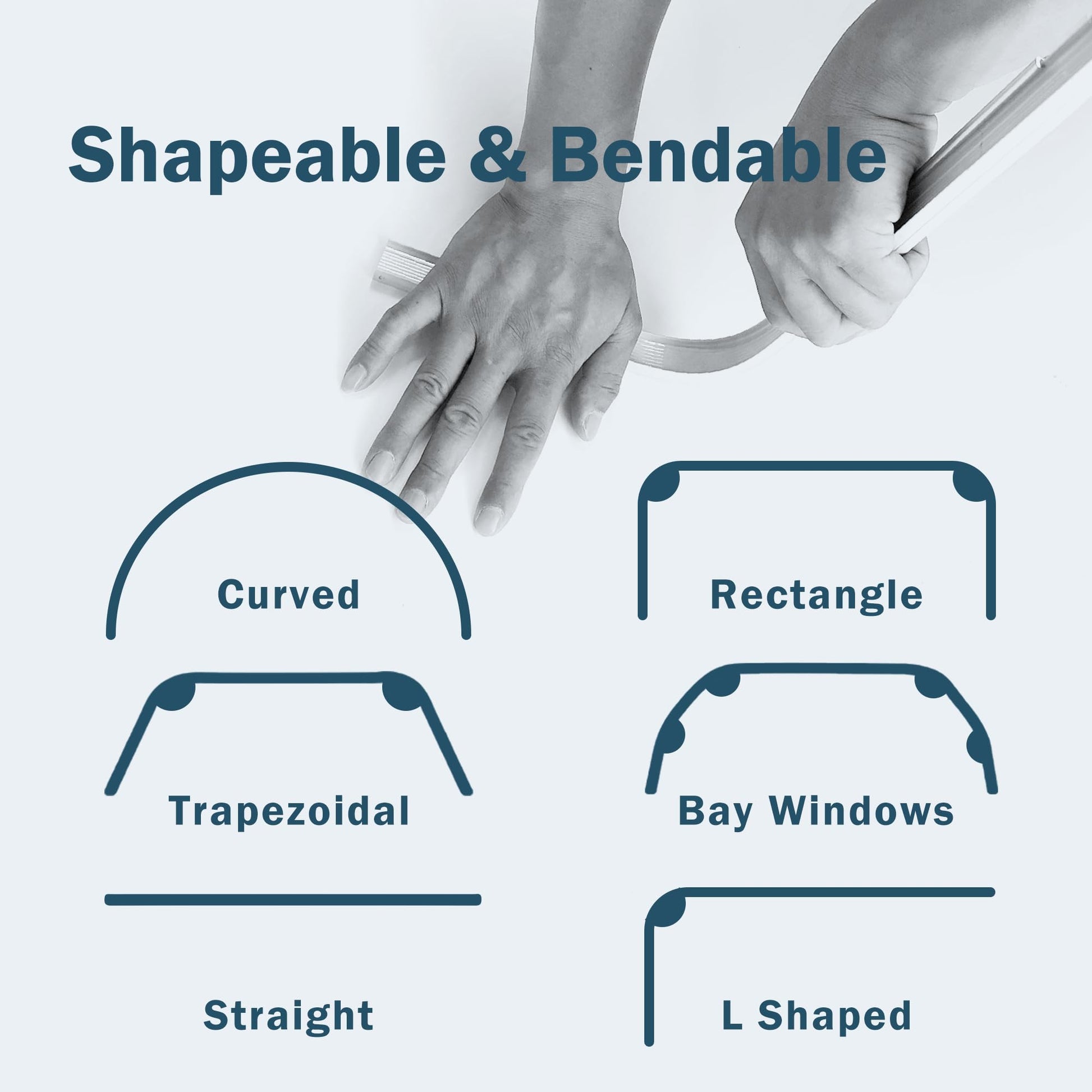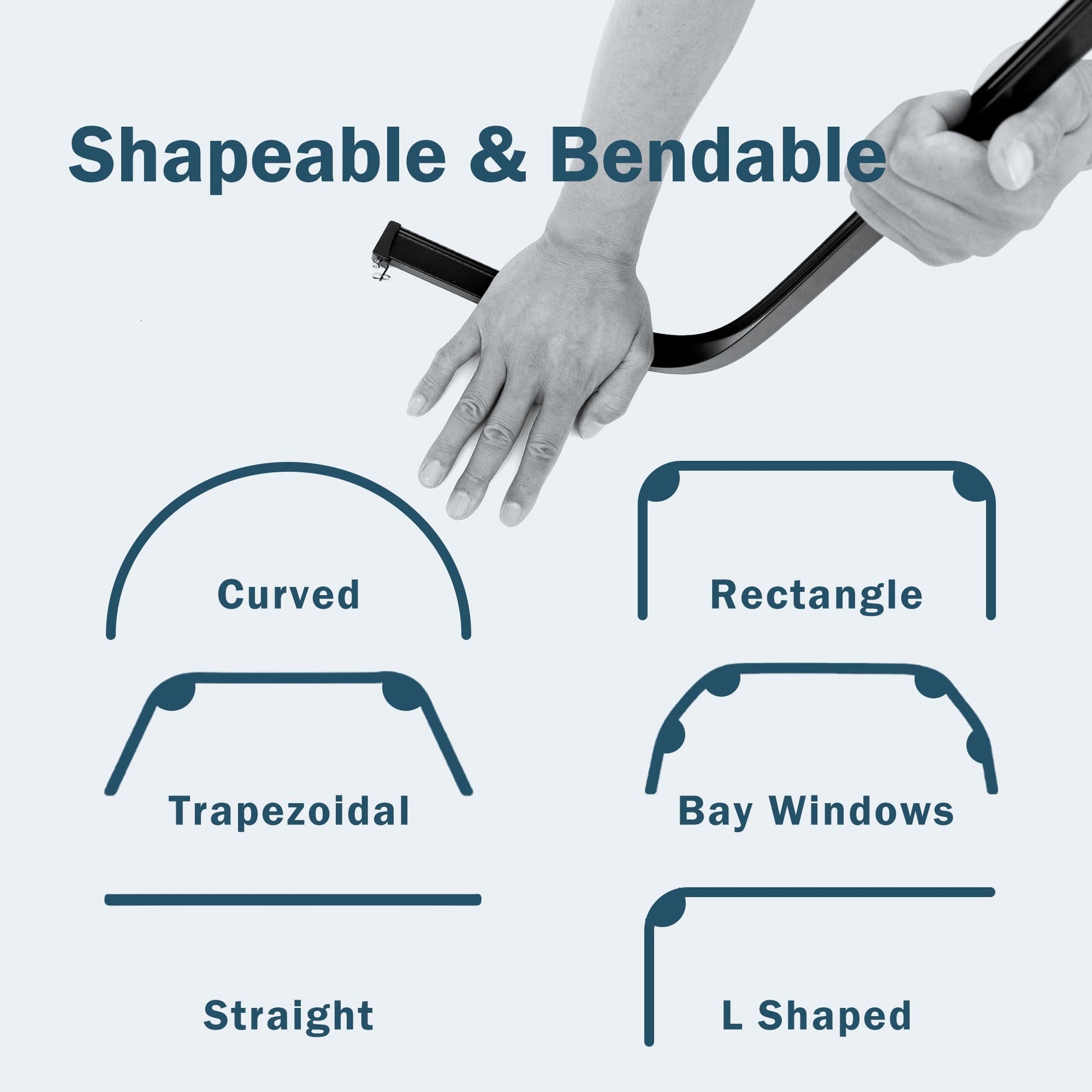 Our ceiling curtain track rails are very flexible and can keep straight, while they can be bent into trapezoidal, arc, L-shaped, arc-shaped, etc,Very easy to bend and doesn't require any tools. suitable for any window and ceiling room partition and window track.