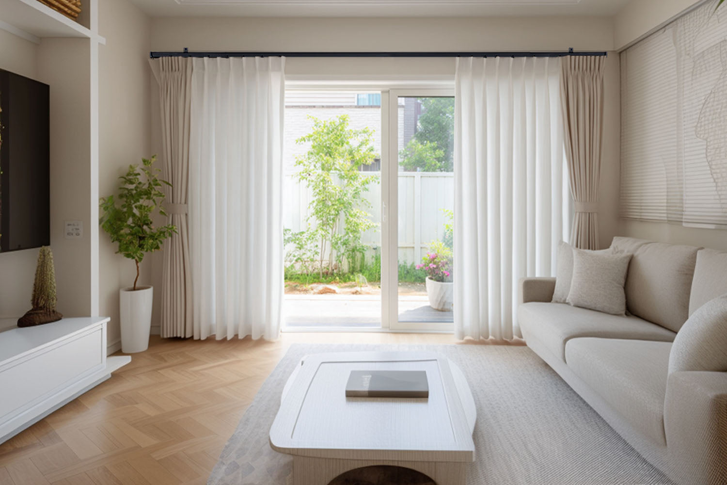 Metal heavy-duty curtain track has the functions of silent, sturdy, waterproof and anti-corrosion, and can be cut freely to size. The bendable flexible track surface is highly glossy sprayed with a smooth glide that can carry up to 50 pounds.