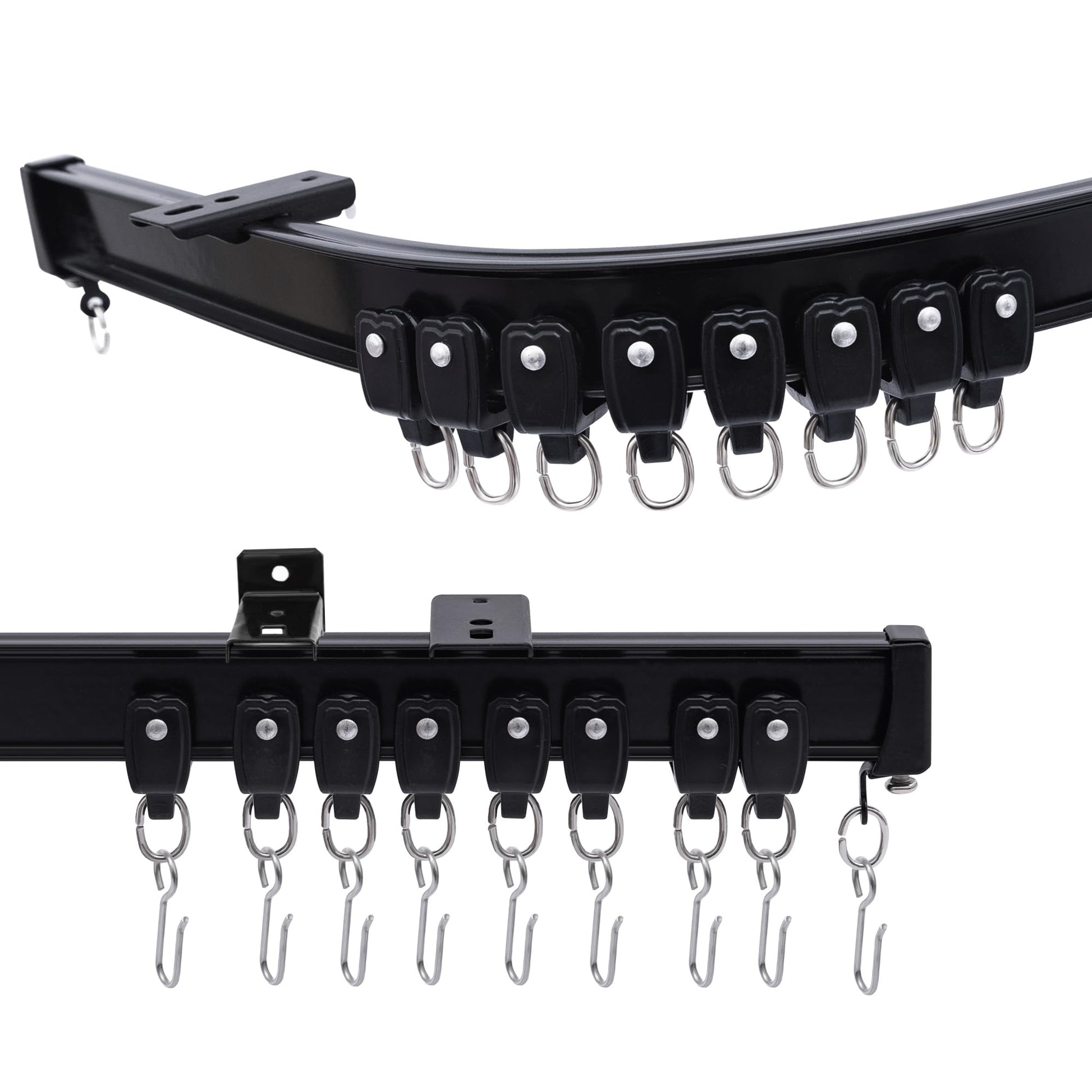 The black and white curtain tracks all use high photoelectric coating technology, so that the surface and interior of the track are very smooth and perfect, easy to slide,Ceiling mounted/wall mounted tracks suitable for room divider curtains, home, office, school, hospital, shower,hotel, outdoor, RV privacy, space partition or holiday decoration.