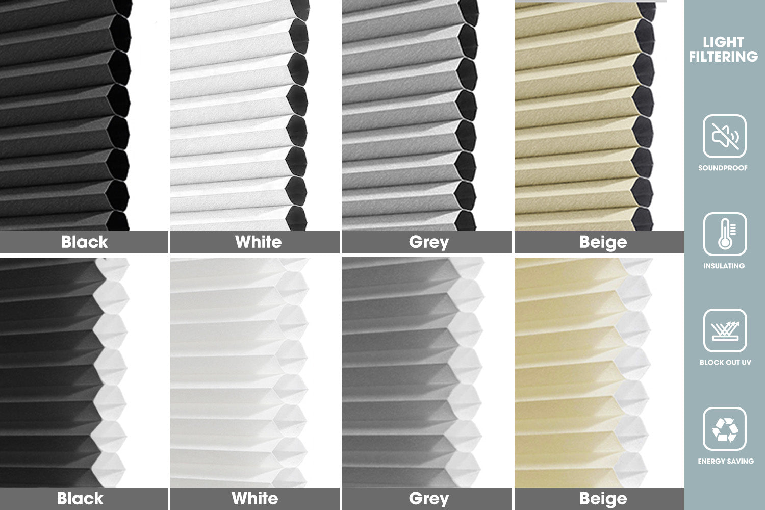 - Multi-scene application: Cordless honeycomb shades are versatile, very suitable for daily home use, such as living room, bedroom, kitchen, bathroom, RV, hotel, office