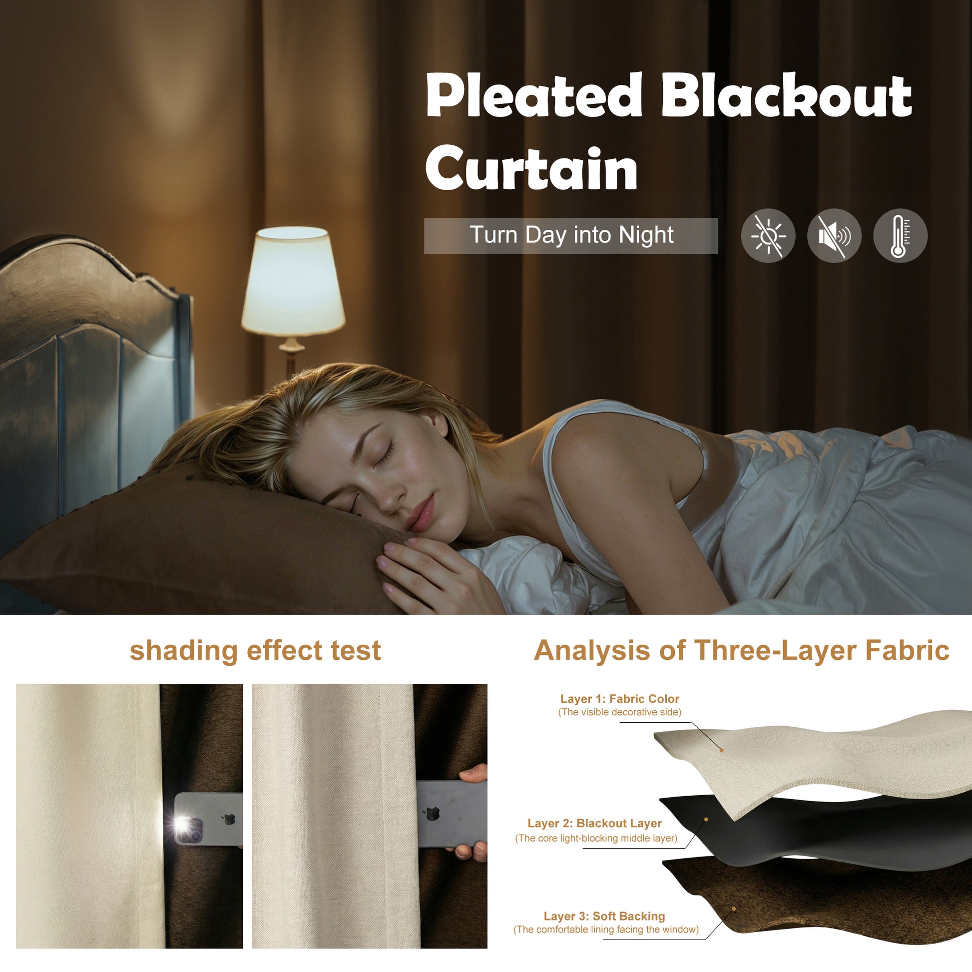Our premium Chenille fabric is exceptionally thick and woven with high-density fibers. Even without an added blackout lining, it provides excellent natural shading (approx. 80%-90%). It effectively darkens the room, protects your privacy, and provides thermal insulation, keeping your space cozy and quiet.