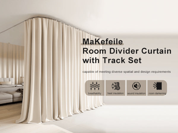 Room Divider Curtain & Ceiling Track Set: The set includes 1 panel of black 100" wide ×84" high Room Divider Curtain and a set of white flexible bendable ceiling curtain tracks (including all accessories for installation) create new spaces without building wall,Eliminate the hassle of matching curtains and tracks.